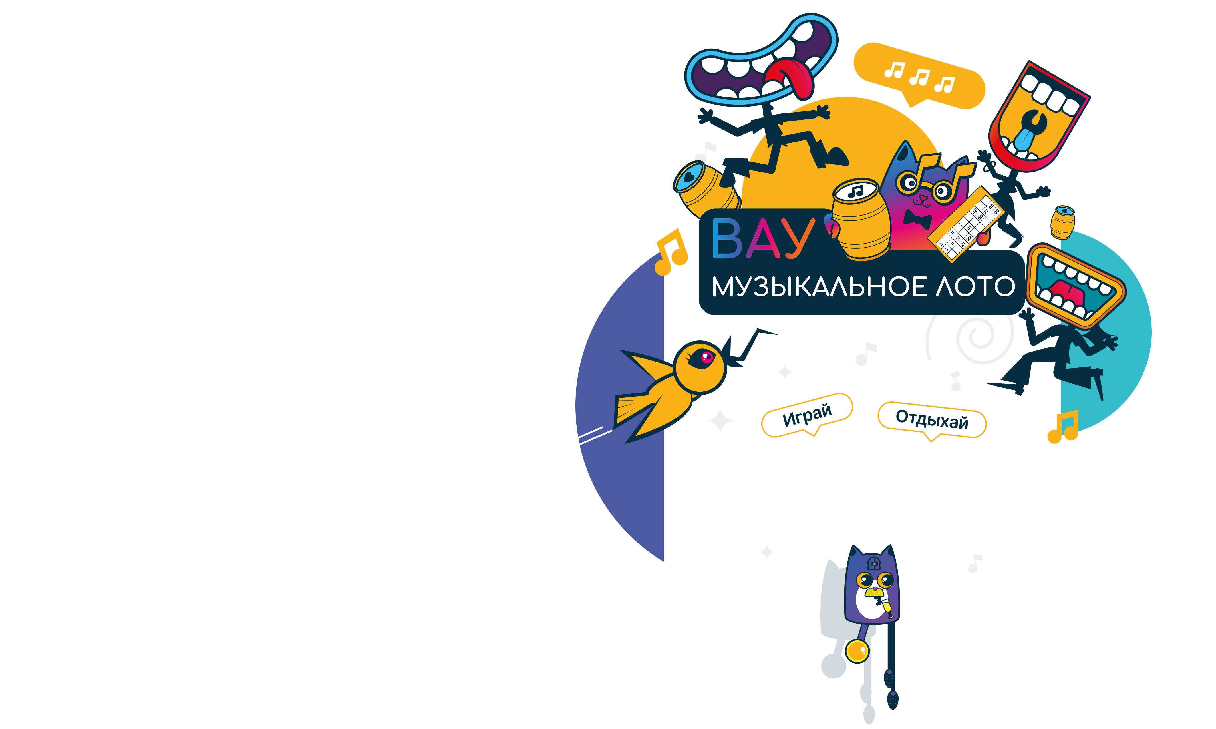 Музыкальный проект для тех, кто хочет расслабиться и повеселиться! 💃🏼 Забудь о скучных буднях! Все проще простого: слушаешь музыку, тянешь бочонки и отмечаешь имена артистов в своем бланке. Собрал нужную комбинацию? Кричи «ВАУ!» и получай призы!